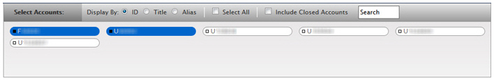 Use the Account Selector at the top of the page to select one or more accounts on which to report. To include activity from accounts you have recently closed, select the Include Closed Accounts check box. If you choose to include closed accounts, those accounts appear in the Account Selector.
