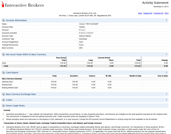 To learn more about activity statements, including an explanation of each statement section, see the Reporting Guide.