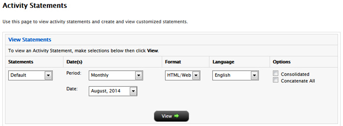 Activity statements contain information about account activity, such as positions, cash balances and transactions. Statements are generated daily, monthly, and yearly for all accounts. As a Advisor, you can view statements for your advisor account, for individual client accounts, or a consolidated statement which can include some or all of your accounts. In addition, clients also have the ability to access their statements electronically through Account Management.