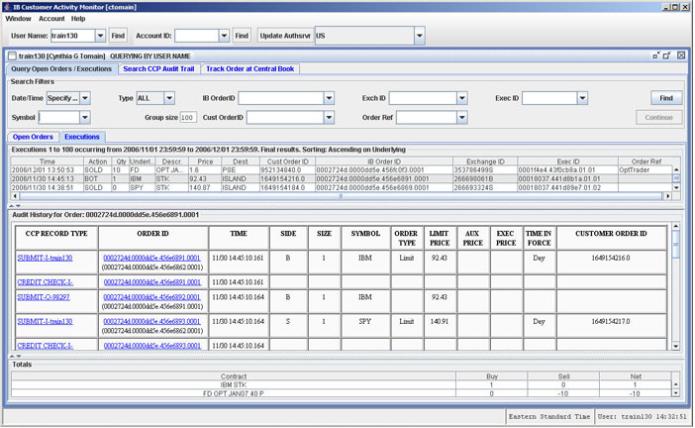 The IB Customer Activity Monitor (CAM) helps Advisors quickly find and view all client activities, including the complete order history and its routing sequence. Our robust user interface displays: