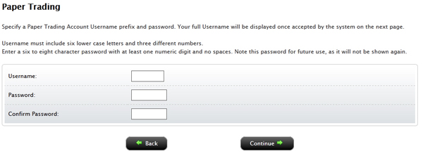 Type a five-character paper trading account username in the field provided.